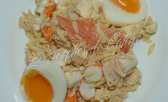 Salade de risetti, surimi, saumon fumé, emmental et mayonnaise