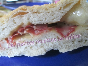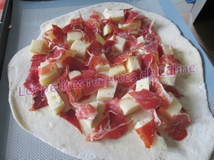 Étaler chacune des boules. Sur une moitié (en longueur) étaler la garniture : jambon ibérique & Tomme de Savoie,