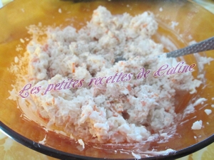 Pas de panique, il vous suffit d’acheter une boîte de bâtonnets de Surimi et vous les passez au mixeur, et ça vous coûte moins cher que le crabe ou même les miettes de surimi qui ne sont pas données.