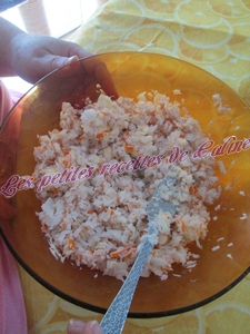 Mettre à cuire votre poisson, une fois cuit et refroidi, dans un saladier, écrasez-le grossièrement à la fourchette,
