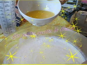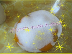 Ajouter le sucre et la cuil à soupe d’eau et fouetter.