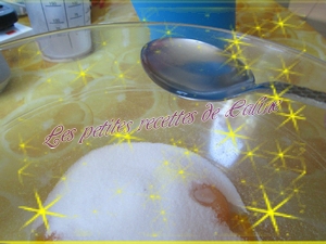 Ajouter le sucre et la cuil à soupe d’eau et fouetter.