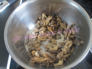 Dans une sauteuse huilée, faire revenir les champignons avec de l’ail, du sel et du poivre. En fin de cuisson, ajouter la viande.
