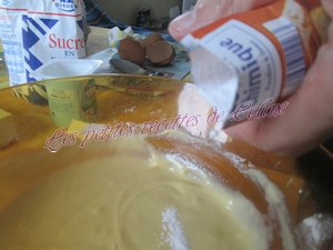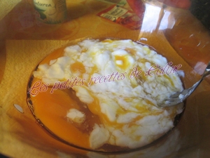 Gateau au yaourt : Mélanger les oeufs avec le yaourt ,ajoutez le sucre en poudre , la farine , la levure, la