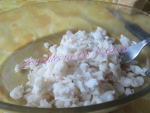 Une fois que la morue est cuite, égouttez-la sur du papier absorbant et laissez-la refroidir. Faites la même chose avec les pommes de terre. Effilez la morue grossièrement dans un plat et retirez toutes les arrêtes.