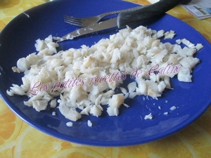 Une fois que la morue est cuite, égouttez-la sur du papier absorbant et laissez-la refroidir. Faites la même chose avec les pommes de terre. Effilez la morue grossièrement dans un plat et retirez toutes les arrêtes.