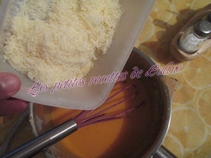Ajouter les jaunes d’oeufs un à un en mélangeant soigneusement à chaque fois. Ajouter ensuite le fromage râpé. Assaisonner suivant le goût.