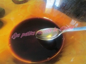 Préparez la sauce en mélangeant vivement la sauce soja, le miel et le sucre.