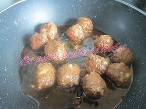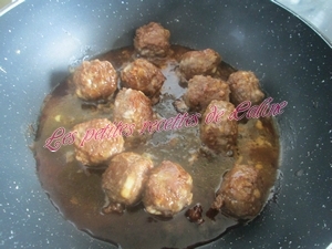 Faire revenir sur feu doux à moyen les boulettes dans une poêle chaude (avec éventuellement un peu d’huile) en ajoutant un peu de sauce.