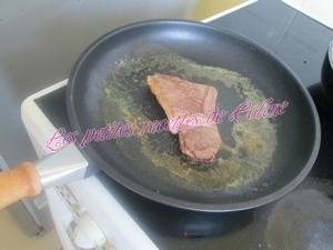Faites chauffer une poêle, avec 1 cuil à soupe d’huile d’olive, une fois bien chaude, versez la viande et la marinade dans cette poêle et cuire 2 a 3 min