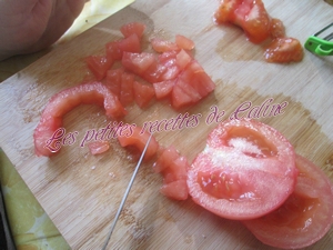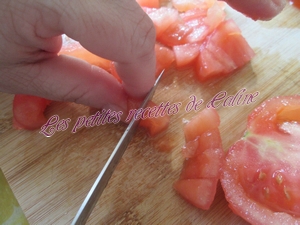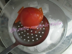 Après avoir insicé en croix la peau de la tomate, faites-la blanchir, égouttez-la et faites-la refroidir, puis pelez-la. Eliminez l’intérieur plus dur, et concassez le reste.