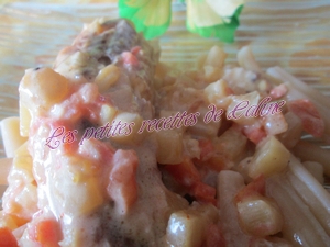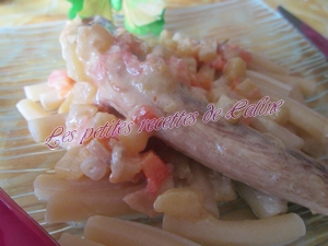 Faites revenir ces petits dès dans le beurre à la poêle pendant quelques minutes, ajouter la 1/2 cuil.à café de céleri, l’oignon. Après quoi, ajoutez le safran, le poivre, le sel et finir avec la crème, bien mélanger, faites bouillir le tout quelques minutes, et réservez au chaud.