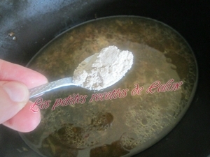 Versez l’eau et le fond de veau, bien mélanger et remettre la viande, salez, poivrez.