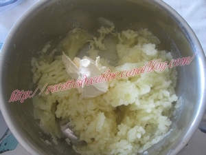 Écraser les pommes de terre cuites avec une fourchette (ou au presse-purée).