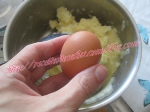 Ajouter le beurre, l’œuf, le persil, le parmesan, et mélanger pour former une belle purée homogène.