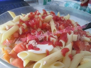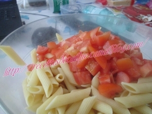 Cuire les pâtes et les laissez égoutter. Les mettre dans une grand saladier.