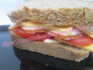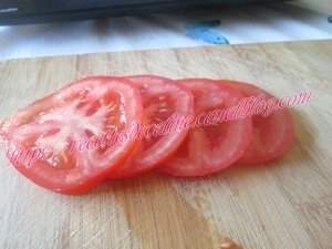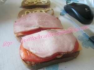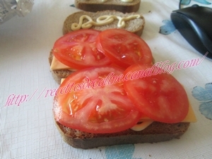 Ajoutez ensuite les tranches de tomates puis les tranches de rôti (et pour les plus gourmands comme chez nous, on a remis une tranche de cheddar).