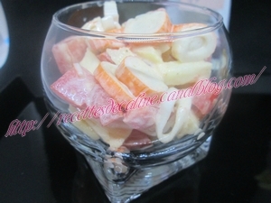 Epluchez la pomme et la couper en petits morceaux, arroser de jus de citron. La mettre dans un saladier