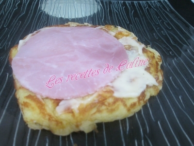 Disposer les blinis dans deux assiettes. Par dessus mettre un peu de mayonnaise, le jambon et le gruyère.