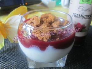 ** Pour le coulis de framboises, vous pouvez prendre celui du commerce ou maison 250 g framboises -75 g de sucre poudre 2 cuillères à soupe eau. Laisser le tout cuire à feu très doux, puis filtrer pour enlever les grains