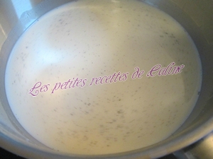 Mettre à chauffer le lait, la crème, la gousse de vanille et le sucre à feu moyen environ 10 minutes en remuant régulièrement à la cuillère en bois.