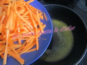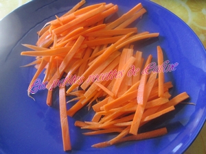 Epluchez les carottes, les couper en fines rondelles ou en fines lanières (Julienne).