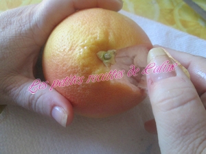 Pendant ce temps, pelez le pamplemousse et en récupérer la chair en enlevant bien les membranes blanches. Réserver.