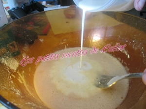 Cassez les œufs dans un saladier et battez-les en omelette. Ajoutez le sucre, mélanger, puis ajouter la farine tamisée petit à petit. Mélangez bien à nouveau puis ajouter le lait et le sucre vanillé ( pour ma part vu que je fais mon sucre vanillé moi même du coup, je n’ai pas mis le sachet de sucre vanillé).