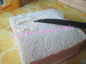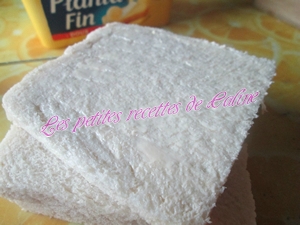 Beurrez 4 tranches de pain de mie, puis déposez-les (côté beurré sur la feuille de cuisson)sur une plaque