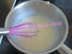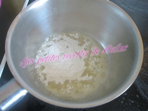 Préparez votre béchamel avec 30 g de beurre + 30 g de farine et bien délayer avec du lait ( je ne mesure pas le lait, car je fais en sorte que ma béchamel ne soit ni trop liquide, ni trop épaisse)