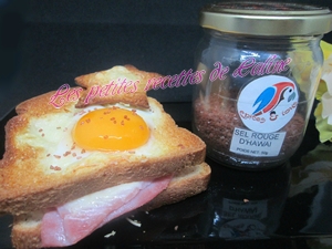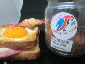 Au moment de servir, vous pouvez mettre un peu de sel rouge d’Hawaï sur le croque ou un peu de fleur de sel ou pourquoi pas le sel du quotidien
