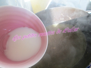 Préparez votre bouillon de volaille avec 40 cl d’eau et 1 cuil à café de fond de volaille