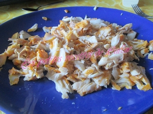 Sortir le haddock du lait dès qu’il est cuit, enlever la peau et les arêtes du poisson.