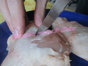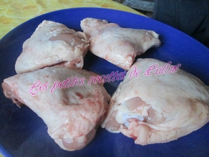 Déposez les hauts de cuisse de poulet sur une assiette. A l’aide d’une pointe de couteau faire des entailles dans les morceaux de viande.