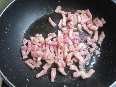 faites chauffer une poêle et y faire revenir les lardons, réservez-les.