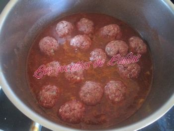 Diminuez le feu et ajoutez les épices, l’assaisonnement et les boulettes.