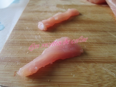 Assaisonner les lamelles de poulet avec de la mayonnaise