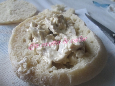 Couper le haut des pains pour former un « chapeau » et enlever un peu de mie de l’intérieur du pain.