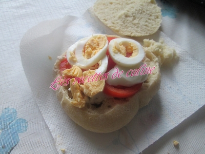 Garnir chaque pain avec les aiguillettes de poulet, ajouter les rondelles de tomates et d’oeufs, puis saler et poivrer. (éventuellement la laitue)