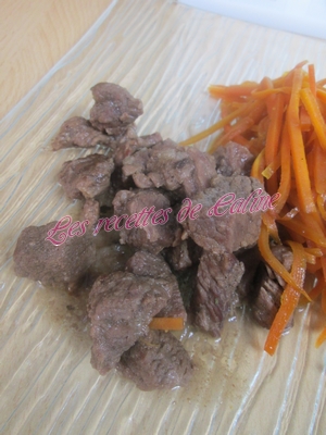 Servir avec une poêlée de carottes glacée à la sauce soja et miel (la recette sera mise demain)