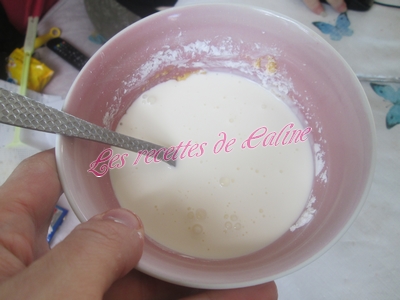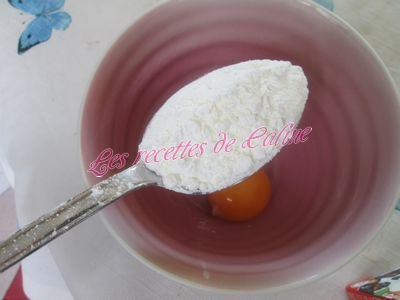 Dans un bol, mélanger les jaunes d’œufs, la crème et la fleur de maïs, fouetter le tout.