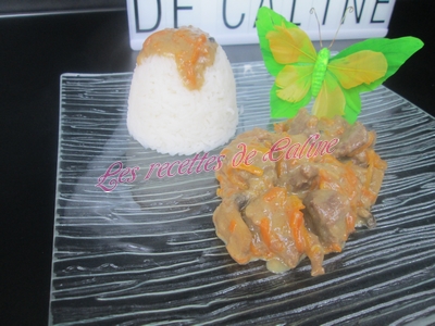 Vous pouvez préparer du riz en parallèle. Mettre le riz dans l’assiette, placer votre viande et vos légumes et verser votre sauce dessus.
