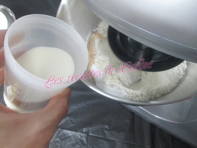 Dans le bol de votre robot (ou saladier), mettre la farine, le sel, le sucre et la levure émiettée (pour ma part, je dilue la levure dans 1 cuil à soupe d’eau bouillante, je trouve que dans le mélange (farine etc…)ça se mélange plus facilement et à la dégustation on sent moins la levure) . Mélanger. Ajouter le lait et l’oeuf préalablement battu. Mélanger à nouveau. Incorporer le beurre en morceaux et pétrir jusqu’à obtention d’une pâte lisse et non collante (10 min au moins de pétrissage). Vous pouvez ajouter quelques cuillères de farine si nécessaire.