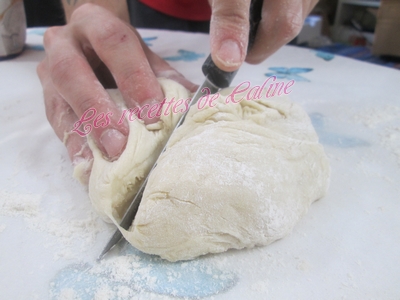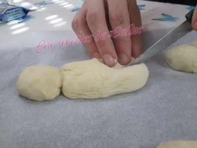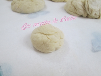 Une fois montée, diviser la pâte en 8. Prendre un de ces morceaux et avec 1/4 de celui-ci façonner la tête.