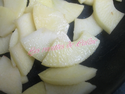 Dans une poêle, faire revenir dans du beurre les pommes épluchées et coupées en morceaux.