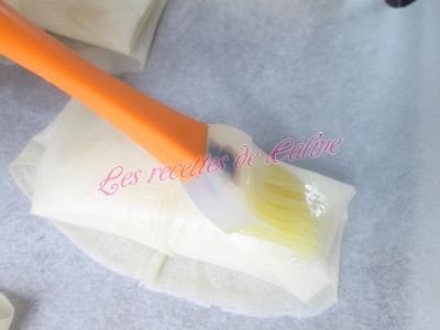 Fermer la feuille de brick en petit paquet et la badigeonner de beurre fondu.
