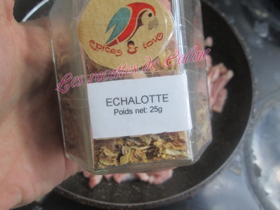 Pelez l’échalote et ciselez la (pour ma part, j’utilise des lanières d’échalotes séchées).