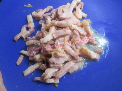 Dans une poêle sans matière grasse, faites dorer les lardons puis ajoutez les échalotes. Poursuivez la cuisson 5 min.