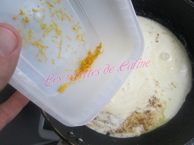 Dans cette même poêle, verser la crème liquide, mettre le jus et les zestes de l’orange restant, saler, poivrer, remuer la sauce, et remettre vos paupiettes quelques secondes de façon a les réchauffer un peu, enrobez-les correctement de sauce.