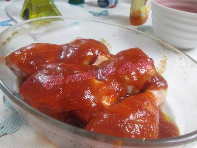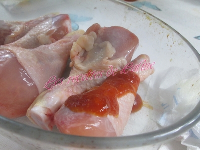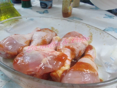 Déposer les pilons de poulet dans un plat et recouvrir de la sauce et bien les masser.